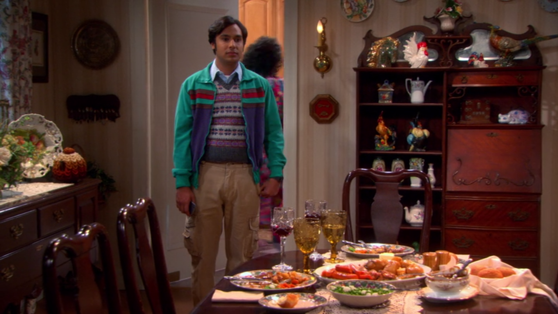 He was seen a little bit in only three episodes but never fully. When the gang thought he was dead, they fashioned a device out of chopsticks to poke at him through their respective windows. We see a sleeping person swat away this device.